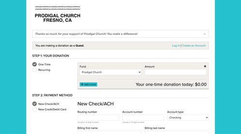You can click on the link above and it will take you to our secure online giving site. You can select one-time donation or recurring donation.